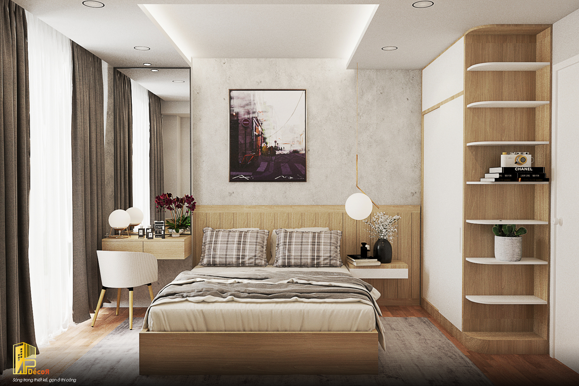 APDecor đã thực hiện thiết kế nội thất căn hộ RiverGate 2 phòng ngủ cho chị Loan với phong cách hiện đại – tối giản, ưu tiên ánh sáng tự nhiên và sự tiện nghi trong sinh hoạt hằng ngày. Nhờ cách bố trí khoa học, căn hộ trở nên rộng rãi, gọn gàng và mang lại cảm giác ấm cúng cho cả gia đình.